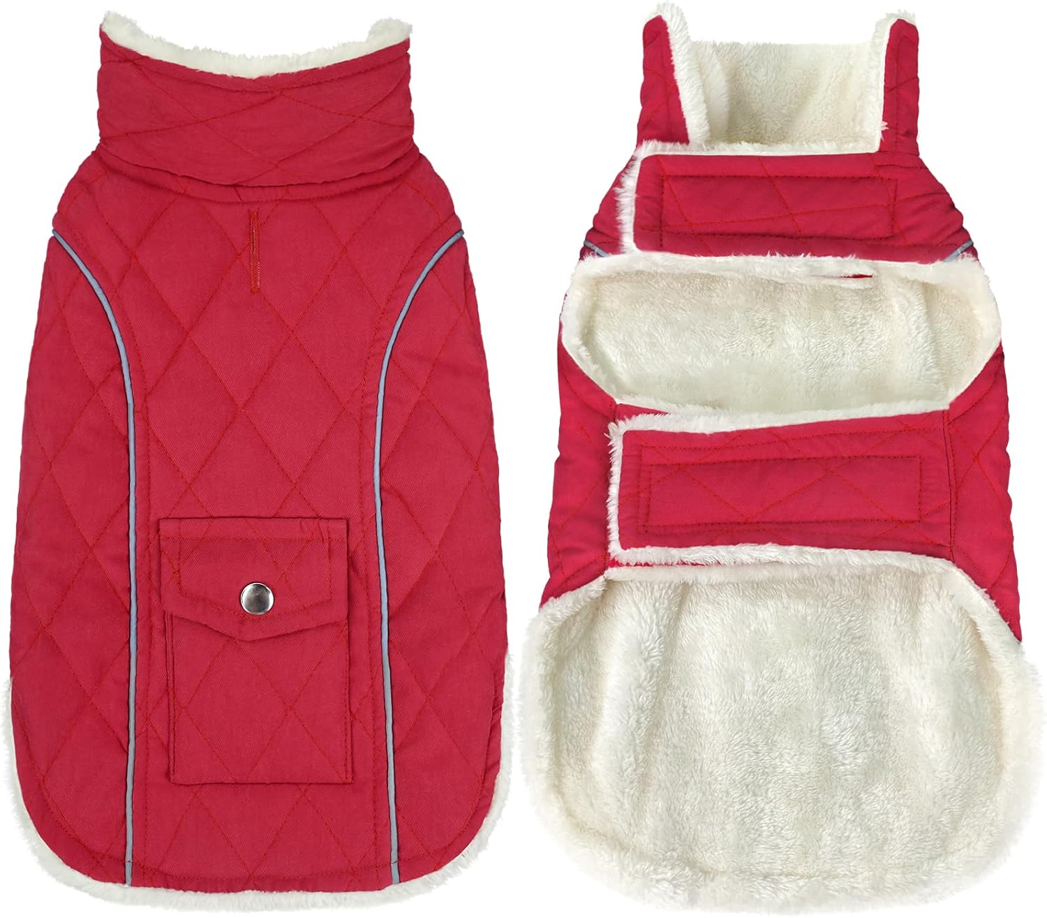 - 【Classic Solid Color Design】Our classic solid color dog warm clothes with the fleece lining provides full coverage for your pet and bringing maximum warmth and full range of motion. With extra design touches like cute back real pocket, leash hole in the back. Reflective strips are added on both sides of the jacket, which are easier to be found in low light